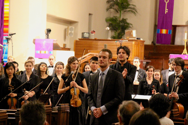 Taking a bow after the American Youth Symphony's world premiere of Mavericks in Walt Disney Concert Hall. Photo by Danielle Dugré