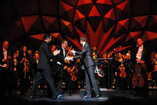 On stage following the premiere of Velocity Festivals by Jacomo Bairos and the Amarillo Symphony