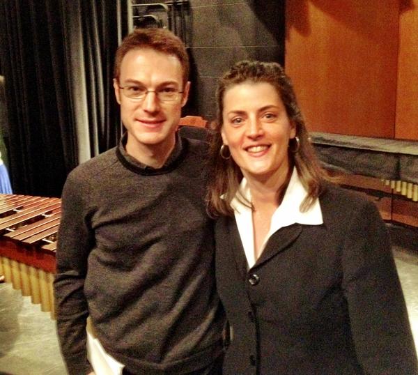 Percussion soloist Lisa Pegher and conductor Tim Muffitt after the premiere of Northern Nights with the Lansing Symphony Orchestra. Photo by Natali Contreras.