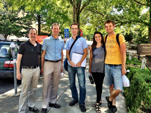 With composers Billy Lackey and Stefan Freund, and poets Jessica Cox and Cameron Jackson during a residency at the University of Missouri.