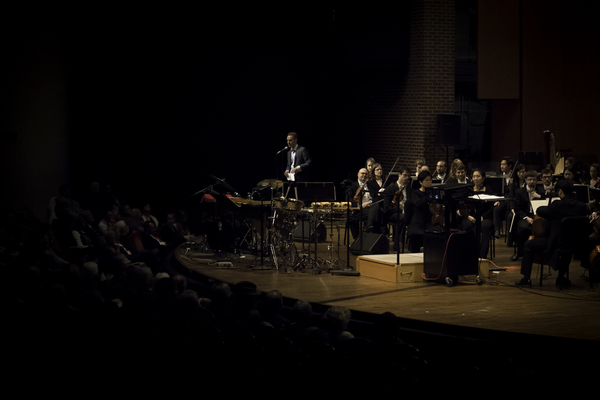 On stage after the Charlotte Symphony's performance on Point Blank, conducted by Jacomo Bairos